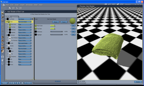 Here tare the settings for the dynamic hair.