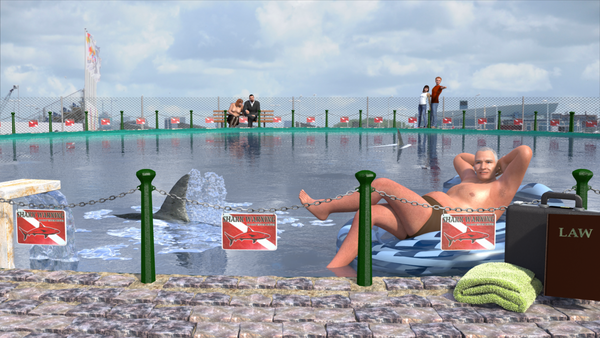 - What do you call a lawyer in a shark pool?