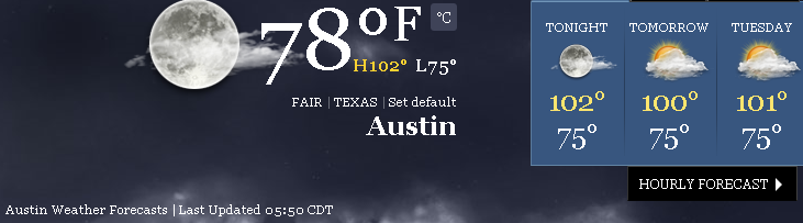 Austin is lookin at 102F today ... with some eggyolk on Thursay.