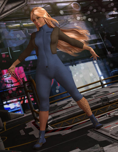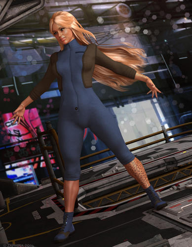 I took a page off of TJOHN's review and used reinterject for gen 2 females to create a second image of the lady with spots. By combining them in Photoshop, I was able to give her skin a more vibrant shade, than what came normally with her poser mats.