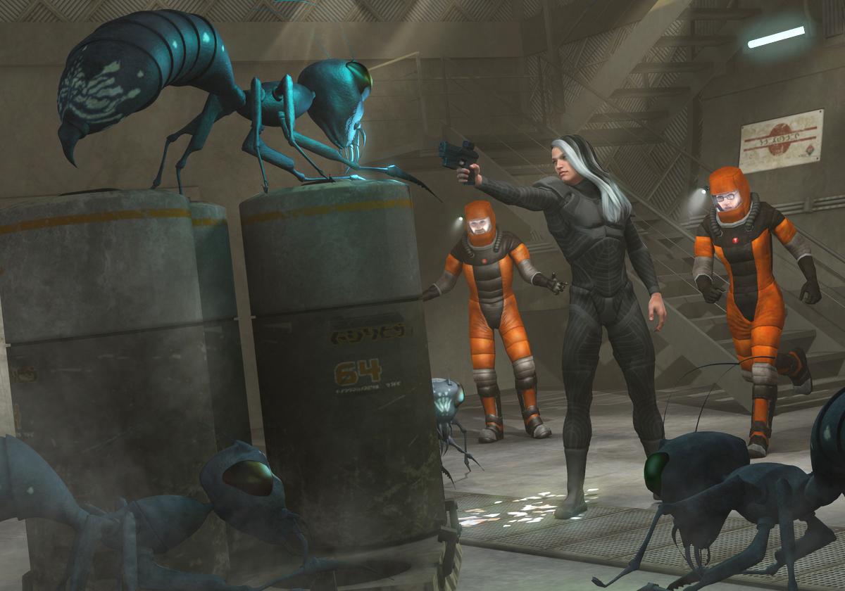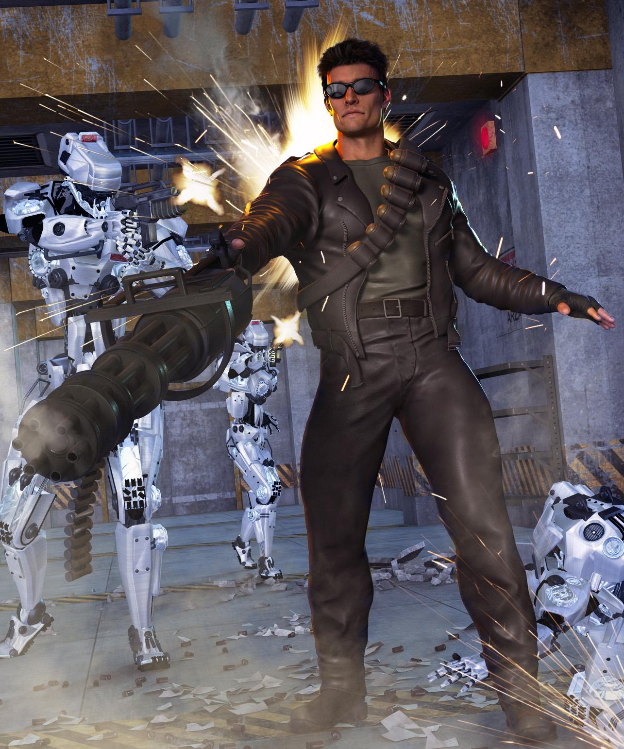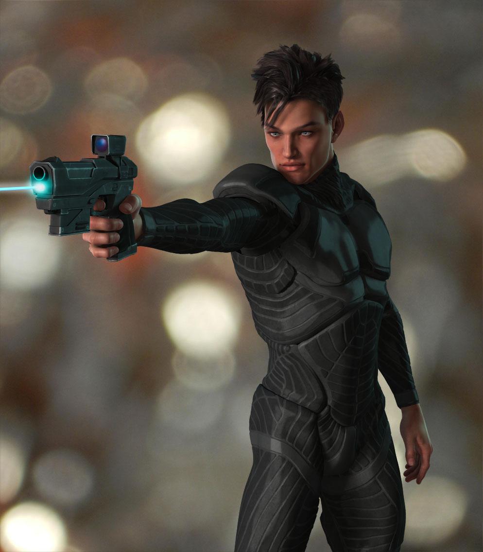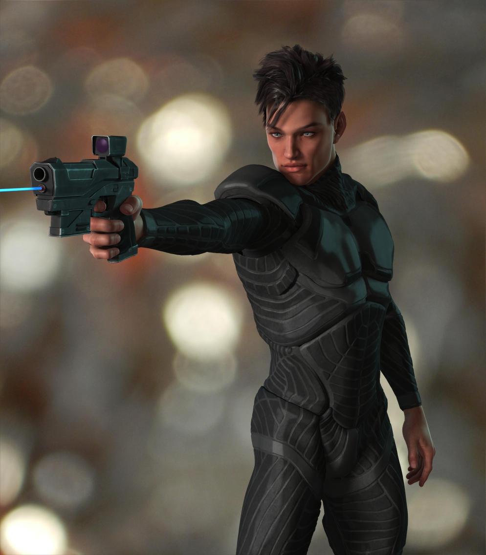 That really makes a difference. I know this is a funny thing to notice, but I like the blue glow on his thumb and the way the lighting stops at his bent knuckles. It helps to highlight the front part of his fingers which are holding the weapon. I wasn't sure if I would like that gun (seemed a bit clunky) but it does look good. I hadn't seen that hair on males and agreed- looks very, very good.