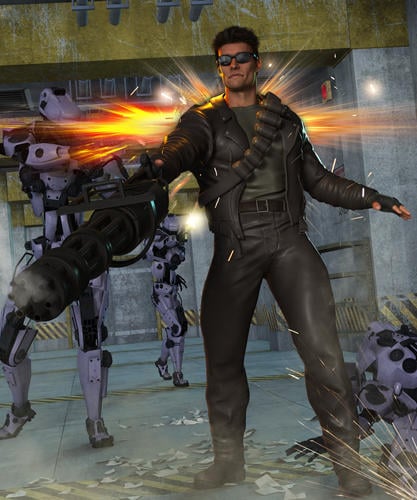 Up next, I wanted to do some terminator fanart because, the terminator is pretty darn awesome. Here's a draft, but I could use some expended rounds for the mini gun. Anyone seen any? Oh and a modern sawed off shotgun would not be amiss. Yeah, I should've kicked myself for not picking up DZfire's Cyborg model 4 just about now. HAh.