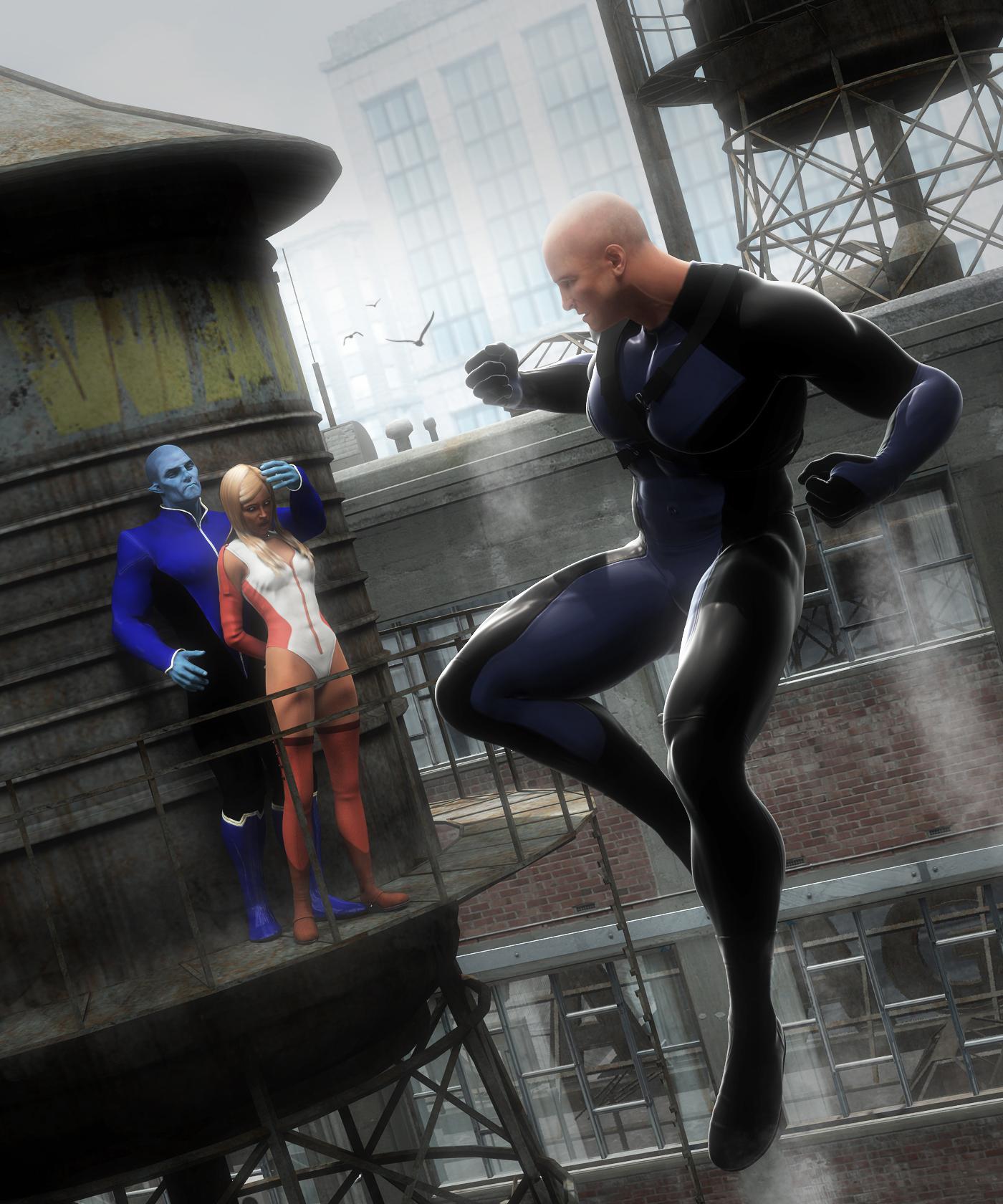 Really interesting Cybernetic eye prop released at yur digital. It needs to be shaded to work with DAZ studio, but I love the fact that it has so many mat zones. Wish there were more items like this sold here... Anyway, if you have Arcadia Rising you have some great glass shaders to use with the lens... I also used some of the supersuit heavy hitters shaders and some I made from bot for genesis.