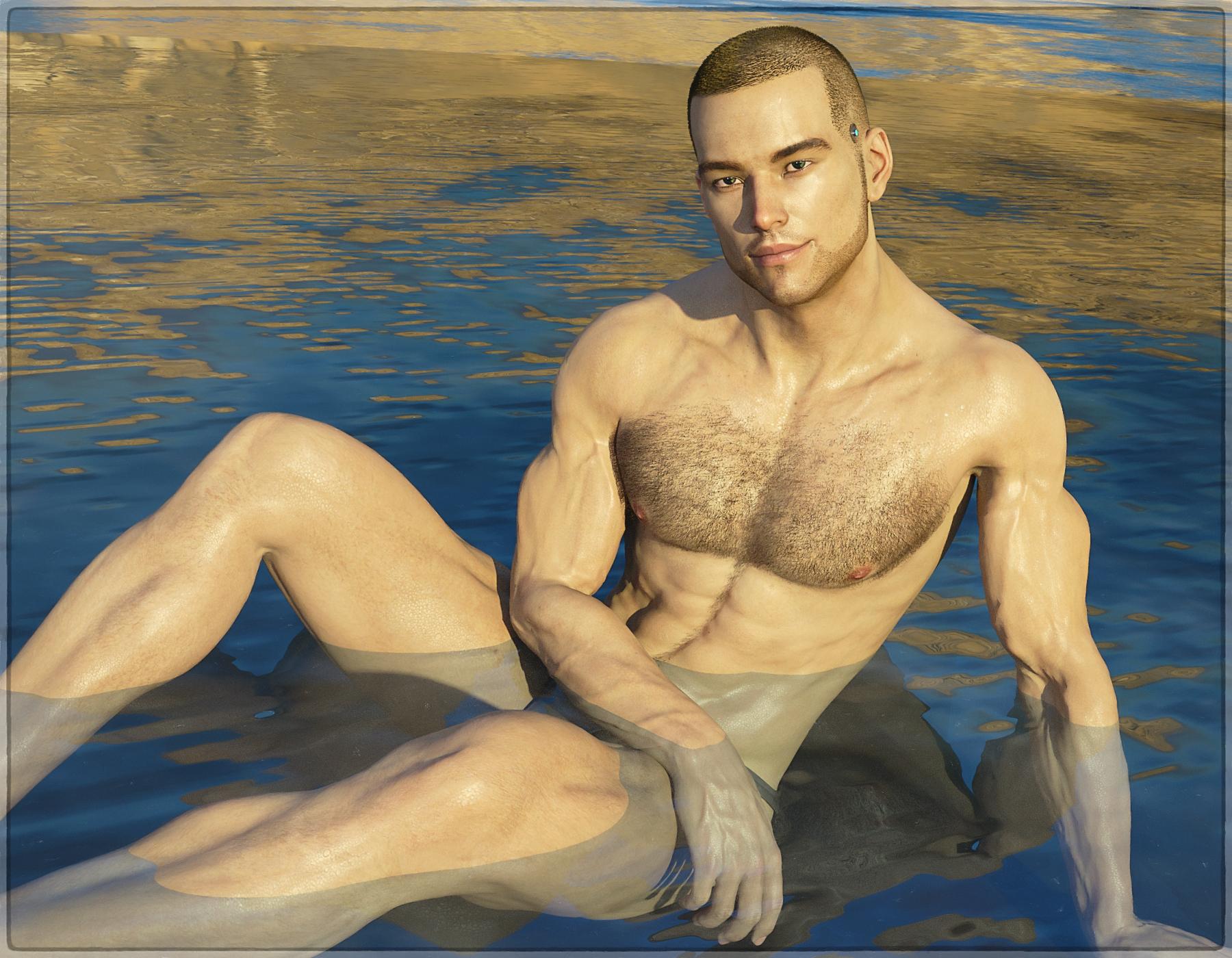 This is a couple of Owen swimsuit images. I really love the MARS 360 HDRI by Midnight Stories. In this case I wanted to try some of the new water shaders in the store. I think the water plane blended perfectly with the 360 environment. These are SF-Design's new water shaders. To make the water darker, and less clear, I added a second plane under the first one to give it depth.