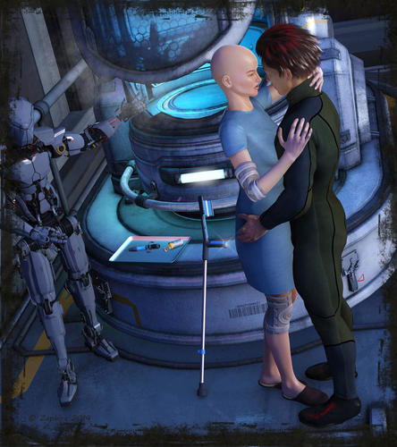 Here we are, yet Another Sarge picture. I enjoyed using creature creator on the alien woman on Sarge's right. of course there is Atticus, as the villain in the piece. I very much like Atticus. Great skin and morph. I'm sure we'll see much more of him. =-)