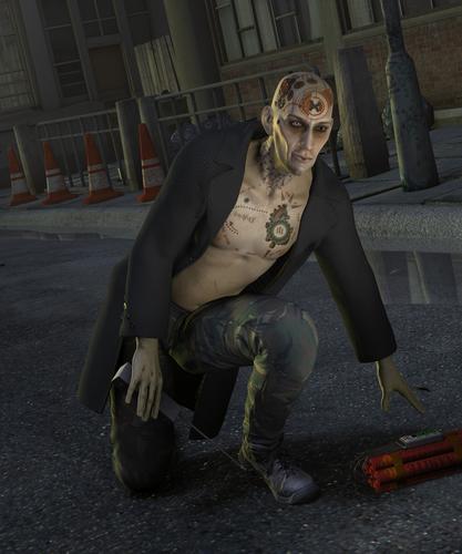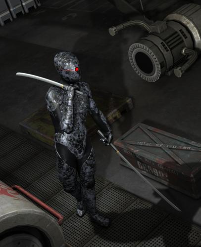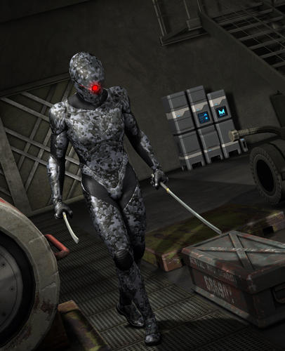 I've been fooling around with Render Sphere. I also really like Rat Race For Neo Station. This environment is well done, and you can really get a nice moody feel like I attempted with the sniper. Someone tipped me off that you can get some interesting characters if you reverse Genesis 2 Male characters to Genesis using Gen X, so this is Gianni converted back to genesis with a gen 1 skin.