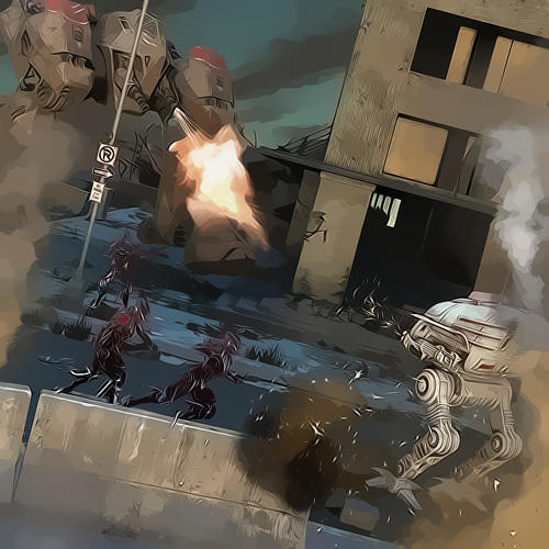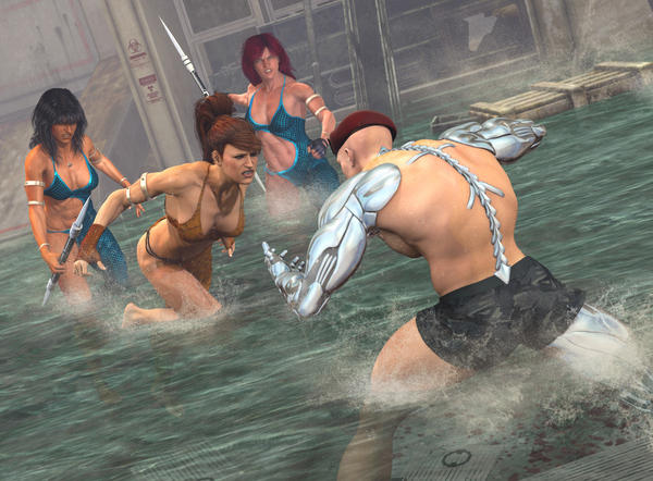 That's a very dynamic image. And I just love her facial expression, it's more annoyed than overwhelmed. And I like that ominous silhouetted figure looking down from above. Thank you for posting it. And Sarge's arms look absolutely badasss, just the right amout of metallic sheen without looking overly glossy.