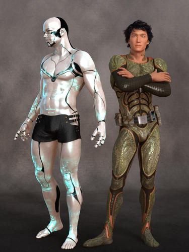 Haven't had as much time as I liked this week, but here are some test renders using newer content I have purchased. The first guy is genesis, with the fantastic HP triton skin. I haven't seen many male cyborg's lately. I think that skin is fantastic. (although challenging to light with it being all white). The other figure is gen 2, with a combo skin applied, and bio squad expansion pack applied over the tech soldier bodysuit. I really like the bio squad expansion pack is quite well done. I you aren't into the organic body armor you can recolor it using a metallic shader.