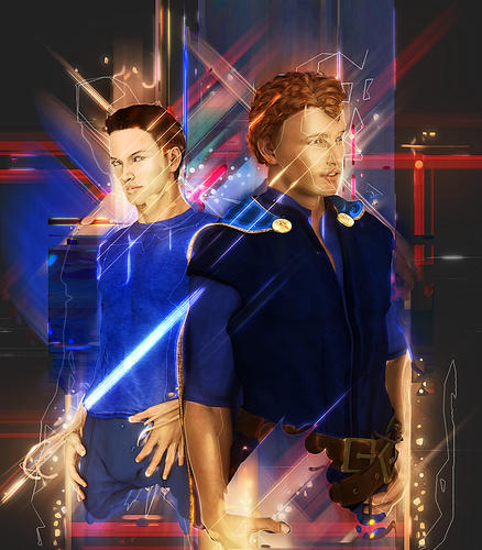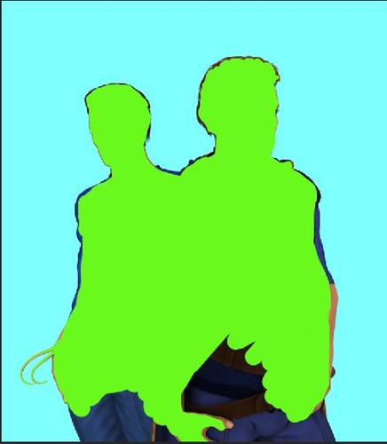Here is another demo. Wanted to try it with 2 characters. The challenge I found here is that there were a few less desirable effects which would pop up on the second guy's face. One was an unfortunate blob of paint right over the mouth and an embossed ring around the eye The second is the lines. You can tweak some of these settings in their individual layers. Some of them are also caused by the sharpening layer. It is also interesting NOT to cover the entire figure to make it appear the figure is more stylized. (as you can see with the foreground male figure, I didn't cover him entirely.) I also think it is more desirable to NOT cover the entire figure. Leave a thin strip around the figure to create the best effect.