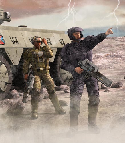 I'm always looking for good skins that can be useful for alien or non-human characters. While I don't tend to do fantasy renders, that doesn't mean I'm opposed to buying fantasy characters and using them in my sci-fi. Here are the skins from Creatures Orc Horde applied to Gen 2 male, and with a few morphs thrown in to look more alien. I also tested out the nice two 3d Dream Hairs Classic Cut II, Ultra Short Cut. Both also on sale with purchase TODAY.I think they look good on the alien figures for a different and alien look.