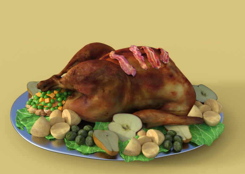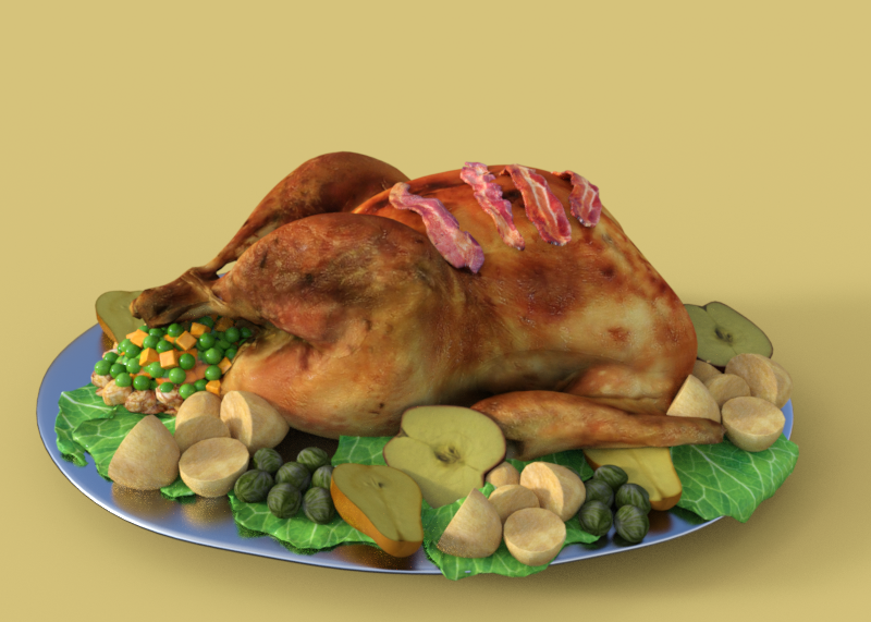 • I like how the turkey platter is coming along. I think the dForce with the lettuce leaves really make it look more realistic. I like the slightly lighter version of the turkey, too.