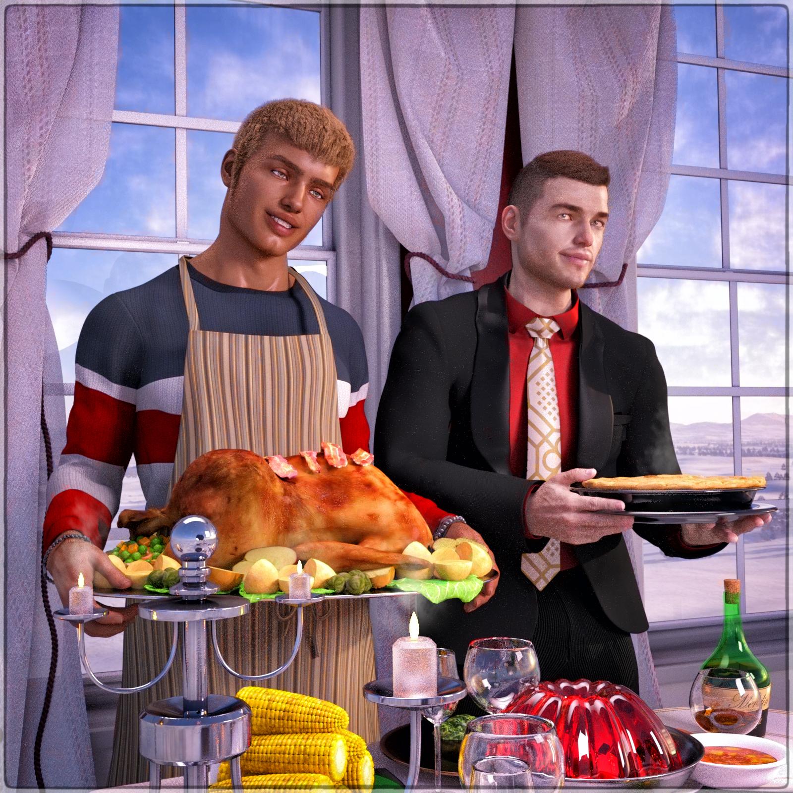 For some reason, the forums are not letting me upload images. I have uploaded the latest Boyd/Owen thanksgiving pic to my gallery. Unfortuantely Studio has become really unwieldy for me due to a bug which makes the viewport controls unusuable. So it took more time than I would like to reprise the thanksgiving render.
