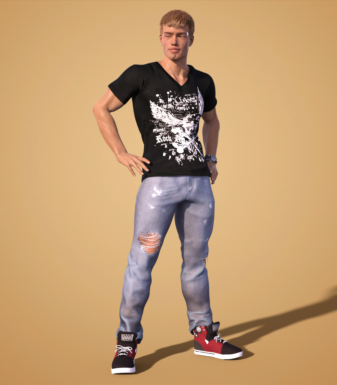 Boyd with a revised anatomical elements area. Someone in the commons was talking about how to fit clothing over the gens. I had not been previously successful at all. But, now I understand the technique. Hurray for no more ken doll elements areas. I honsetly don't understand why male characters have to go wtihout their elements, and yet such loving detail is paid to designing womens chests. Oh well, yeah I do understand that... But stilll... Kinda odd to me. If you want to make realistic people, their elements area needs more than just a smooth bump.