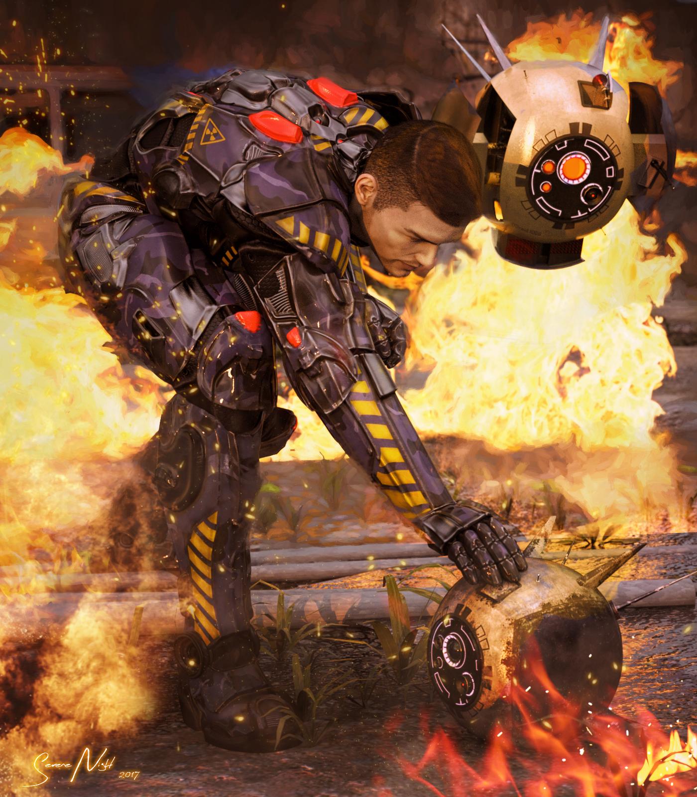 Aw, poor little drone! Very nice details throughout the set, riveting render! i like the shark one too.