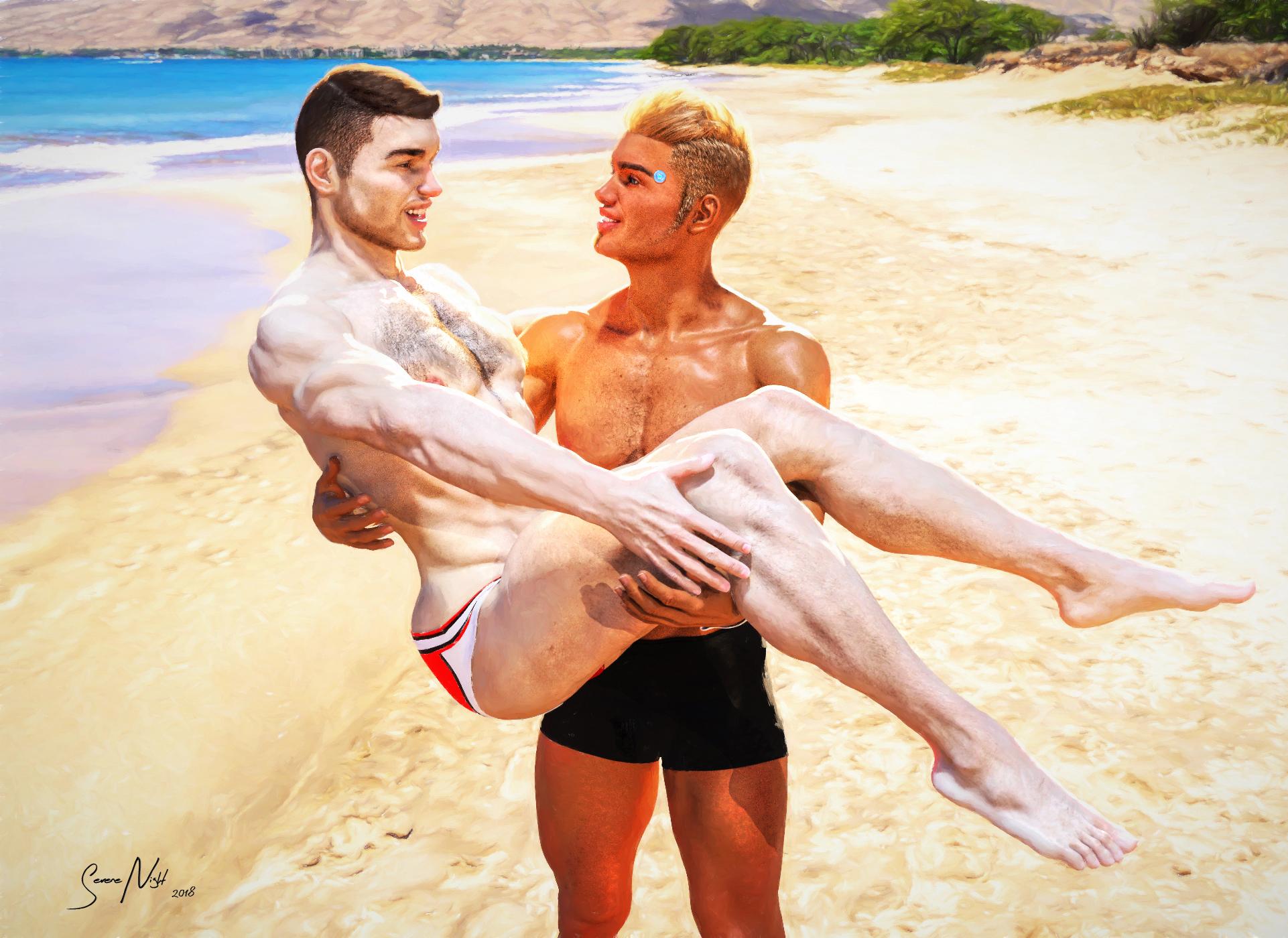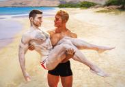 I think poses where one character is carrying the heavy weight of another character are challenging especially if it is two men. I think if I were doing this again, I'd try to have Boyd bend further back. Owen's 6 inches shorter than Boyd, but sometimes he looks bigger due to his fitness and perspective. I liked the expressions in this quite a bit. The HDRI is one of my favorites.. Its Dimension Theory's real world Maui.
