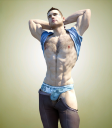 Jepe's bedding for M8! and an outfit by Dzheng. I have to say that Dzheng really knows how to make male skimpwear garments. This is autofit from Genesis and it fit so much better than many Gen 8 outfits. Of course I can only show the front! =-) I recolored it with Metallic Leather Shaders I can't figure out where I got them, but they look really nice.