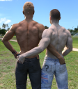 I have another pose I'm working on to add to my male couple pose set. I am at 4 now. This is a wip so there may be some clipping. This is a rather hard pose to do- to get the jeans to fit, I have to turn on smoothing, but when I do that, unfortunate things happen to the pants in areas that I don't want and the open pocket morph. I have to do 2 renders I'm afraid, one with smoothing on, and one with it off. But I think after an hour or so, I managed to almost get the hands and arms in the correct position in the pockets. Its for a shorter and taller man. I'm not sure if it would be easier with guys the same size or not.