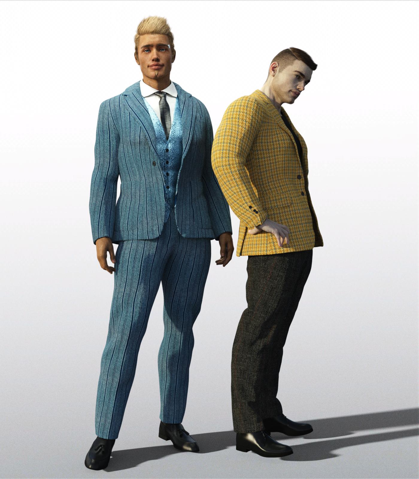 Okay here is the Classic Suits shaders, and I must say- they look awesome. I really like the fabric Owen is wearing, and the dark material pattern on his pants. Very realistic set. I'm surprised since this is a merchant resource why more men's clothing doesn't use this.