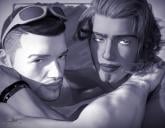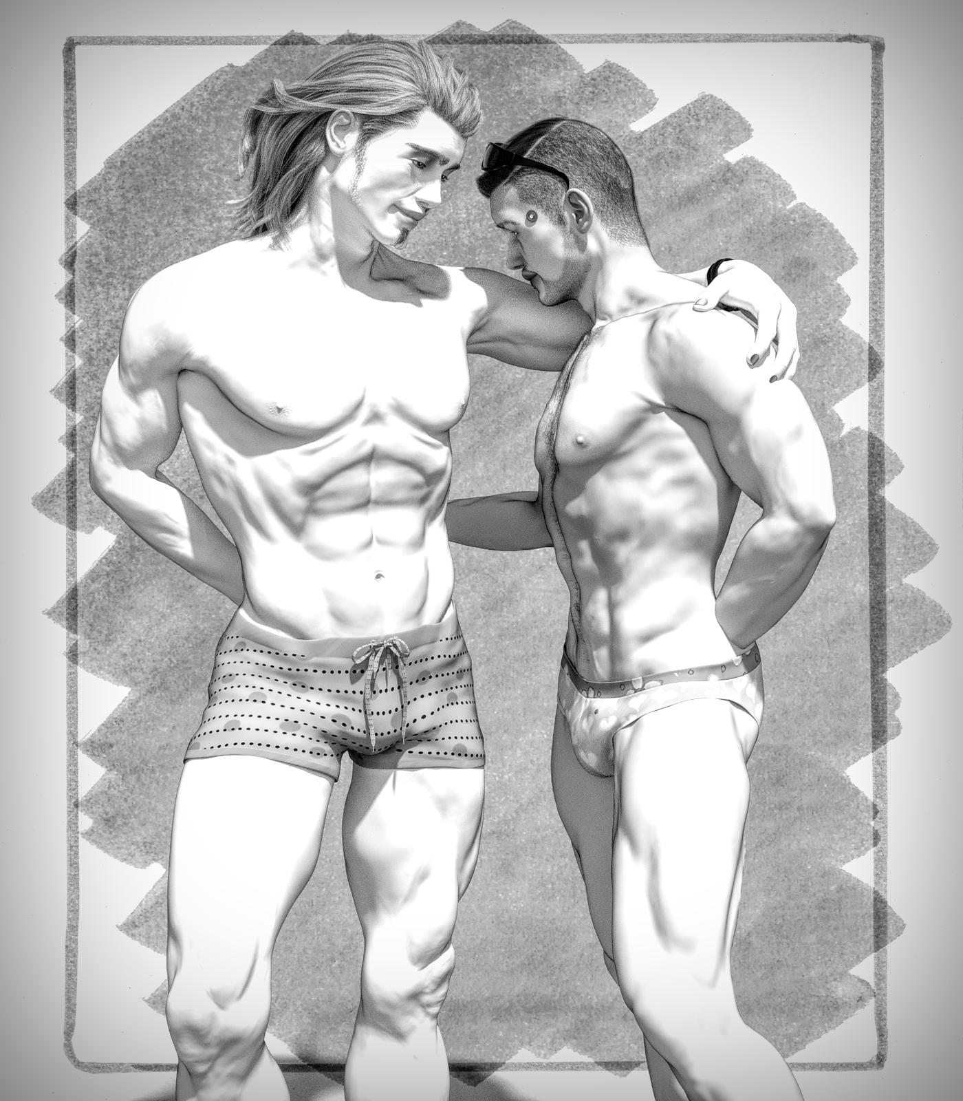 Manga markers is a very addictive product. I love this set...... Here I rendered it in color. Boyd is red, Owen is Yellow. Then I took it into Topaz Studio-Free, and ran a filter. Smoothing it out with a custom filter in Topaz Impressions. I do wish for more stylized hair... But so far, the product is ripping.