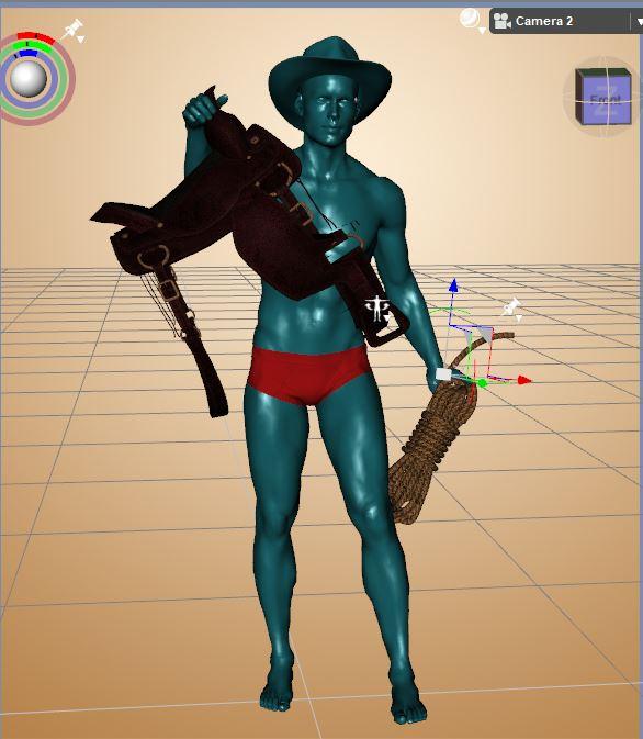 I took Nonesuch's advice and it looks a bit better with hand on the saddle horn. I still have to hide the rear fenders though...But if they don't show they don't show.  Wish I could undo the straps and make the saddle kinda flexible since its not going to be open like there is a horse inside. You can kind of scale the width but it behaves wierd when you do.. I may just leave that up to people who download the pose set to mess with.
