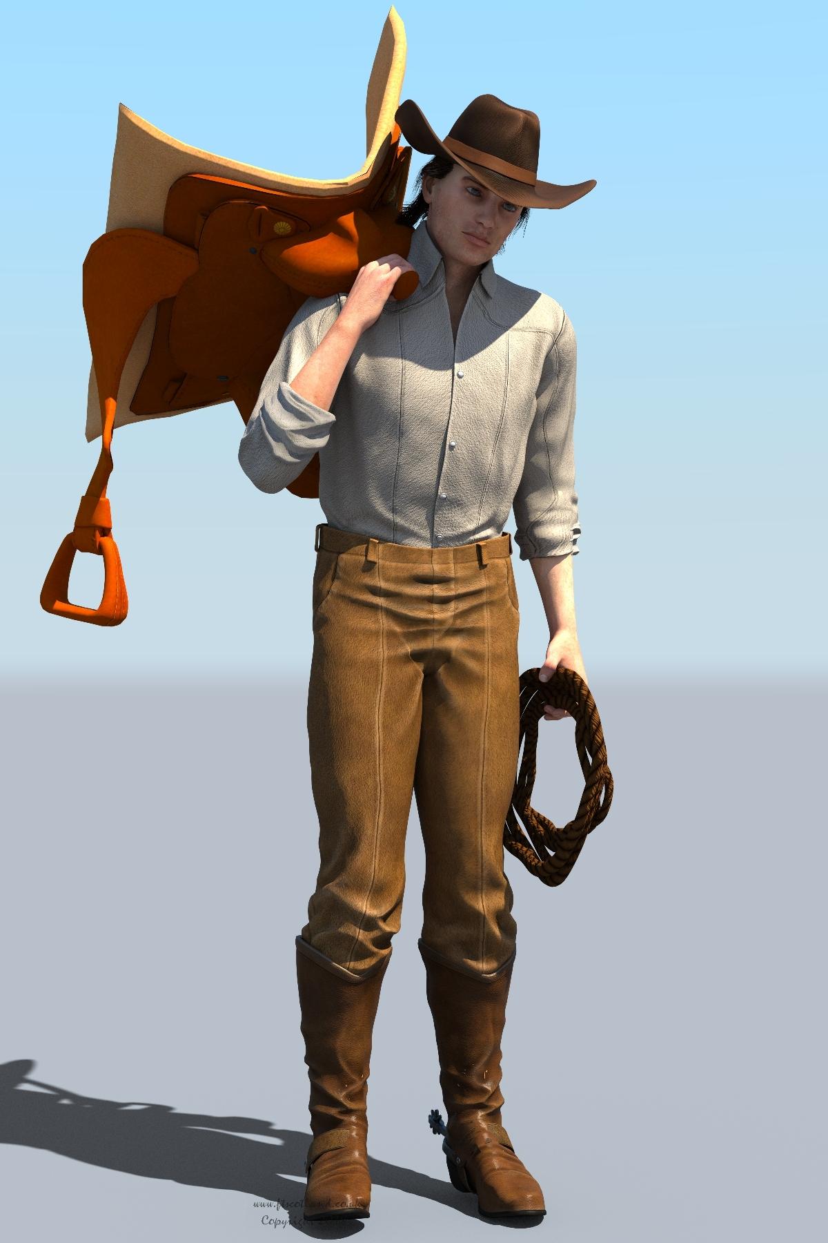 You mentioned looking for a coiled rope. There is one in the Terradome 3 Canal Country props. I added it to the saddle render. It needed adjusting scale wise to get it to fit in the hand though.