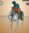 Okay so here, we have the cowboy rescuing the little calf and giving it a ride back to the ranch. And yes, I managed to get the feet in the stirrups of the western saddle. I had to use the morph to remove the saddle horn and lower the cantle.  No matter how hard I tried I couldn't get the cow to fit on the cowboy's lap and leave the horn in place. The calf however is grateful for the removal of the saddle horn.