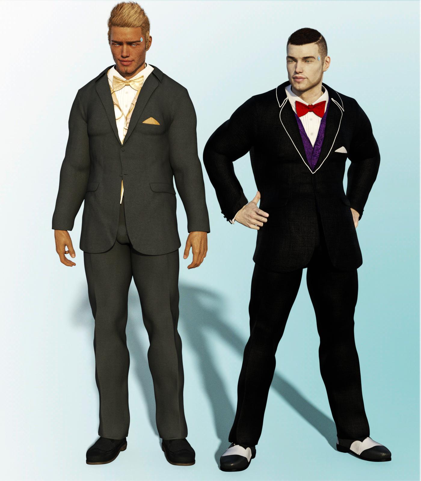 Here is the tux with most of Boyd and Owen's muscularity dialed out. IT hangs a lot better I think. I used one of the poses from the Wedding Photo shoot set.