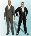 I replaced the red tie and purple vest though with the textures from the white suit. I recommend colliding the jacket with the vest , and reducing the shirt. You are sort of damned if you do damned if you dont. If you collide with the vest, the arms will have pokethrough. If you collide with the shirt, the vest will poke through. But it seems there is less pokethrough from the shirt than vest especially if you reduce its size.