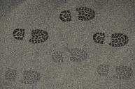 This is a good find. Its a photoshop brush set with footprints of various sorts. The kicker? there is a 'depth' layer style to make it look indented in the snow/sand or background. That will be useful