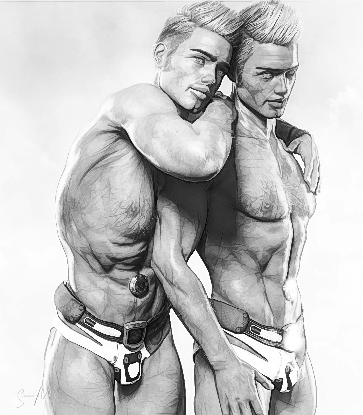 Well here is my contribution to the awesomeness that is the cyberpunk 2047 outfit. Boyd and.... Boyd...... I found it you reversed the crotch adjust 2 morph to negative 100 you got some great male coverage in the elements region. I made the pose 'cause I couldn't find a good 'twins' pose in my runtime.