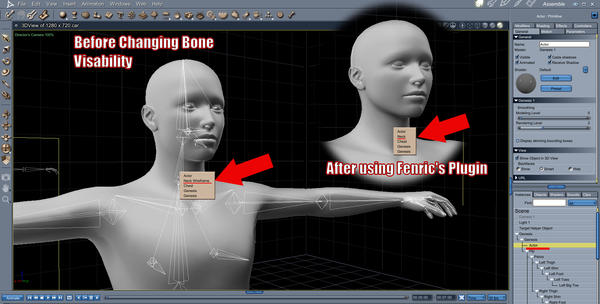 In the illustrations below, the first image shows how to apply the Change in Bone Visibility using the plugin. The second image shows the difference it makes in the right-click menu.