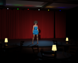 Wow, I don't want to offend you by being in any way critical. I might suggest making the spotlight look more like a spotlight - with a defined outline if possible. I'd obviously have a couple of people in the audience. Maybe the fault of my display but I can't make out anything in the audience area except for the lamps. I'd possibly increse the cast of the light from them so they light up the table area a bit more. The performer needs a microphone - either on a stand or in her hand. If you are any good with atmospheric lighting, I'd add a bit of fog to make it look like a smoky room - if this is so retro, most of the audience would have been smokers as I recall. You might experiment with materials for the curtain (drapes for Americans). Mabe a satin finish? Maybe a lit neon strip on the under-edge of the stage front trim.