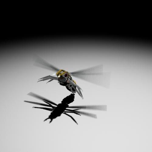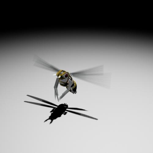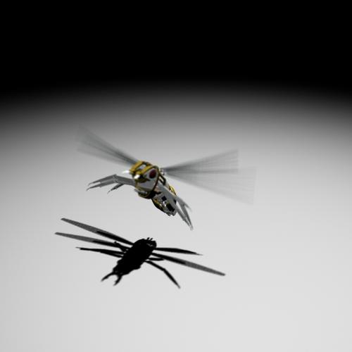 I tried to get a decent shadow on the G2F Robo surface but I only managed to get a shadow when the Wasp was well above the surface. As soon as the wasp got close to the surface, the shadow started to break up. Some shadows for the parts like the head and legs totally failed. In the end after hours of headbutting the wall I merged 2 renders in Gimp.