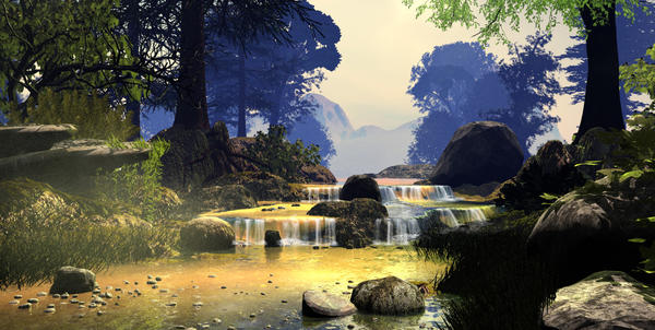 @ orbital : you've really create a wonderful scene! I like your render style.. and here I particulary like the light, the water fall and stream color. Well done and hat off!