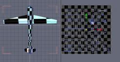 "Extracting" the tails of the plane from the "fuselage" form. This is, cutting them from the main mesh, converting them as a new piece apart. What I like very much and surprise me a lot, is that when I EXTRACT the tails creating them as a new form, all the UVs included in the tails are well separated too from the main mesh, and taked as UVs of the new form without have to do nothing more.