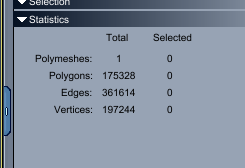And the stats....guess they are vertices/polys/edges, wish it wasn't so hungry!