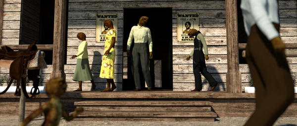 @MelanieL - Clever work creating the historical feel throughout (the juxtaposition of girl on swing with the girl at the dresser is a very nice touch). A lovely scene with a hint of weird thanks to those monkeys...