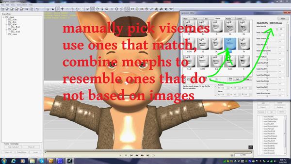 use/utilize things like smile, frown, kiss etc depending on what other morphs the figure has to resemble the visemes you do not have using the picture guides for each