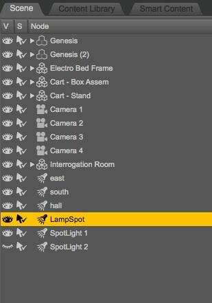 Umm... 3DeLight lighting is all done by hand by the user or from presets. And I only asked for a Snap of the Scene Tab with the list not a Screen snap of your working image... Like this...That would at least show me which light your using.