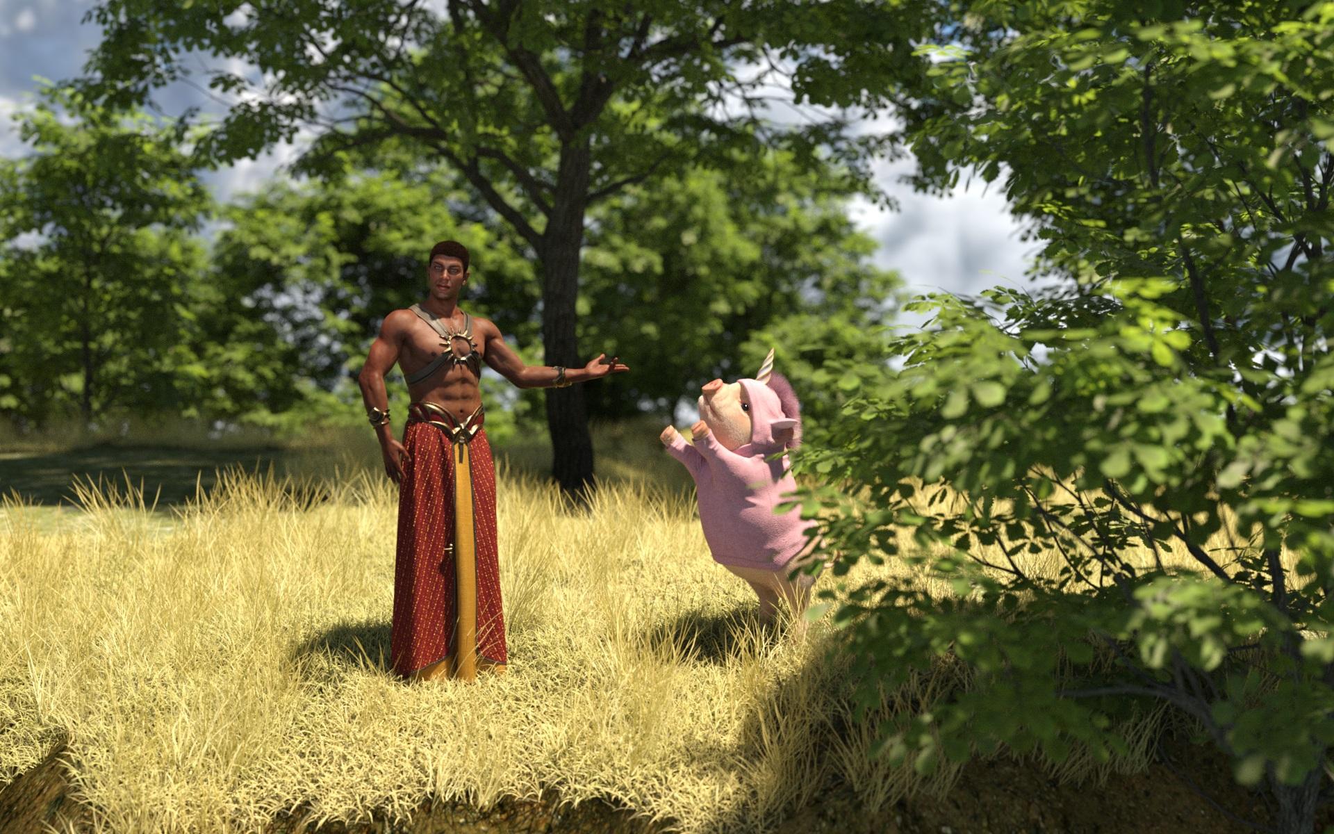 I made a quick and simple scene with him. It still needs some more work to be fully presentable in my gallery, though.