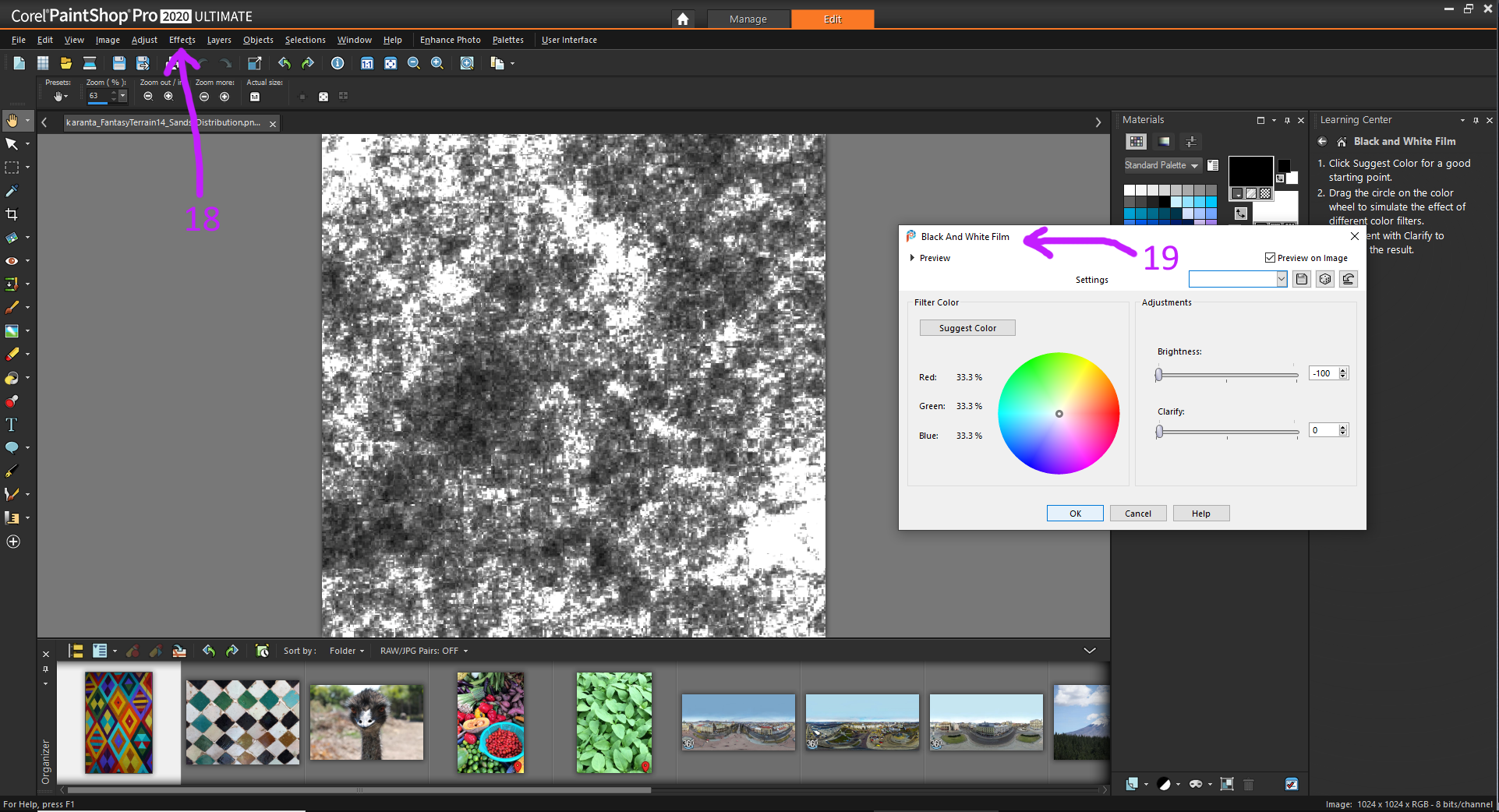 22. Just in case it's needed, I also created a negative image of the bw.png, saved as neg.png