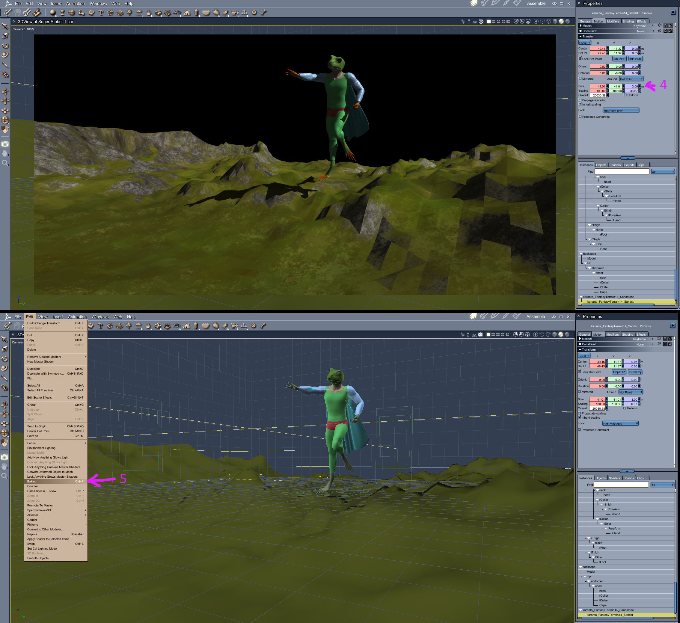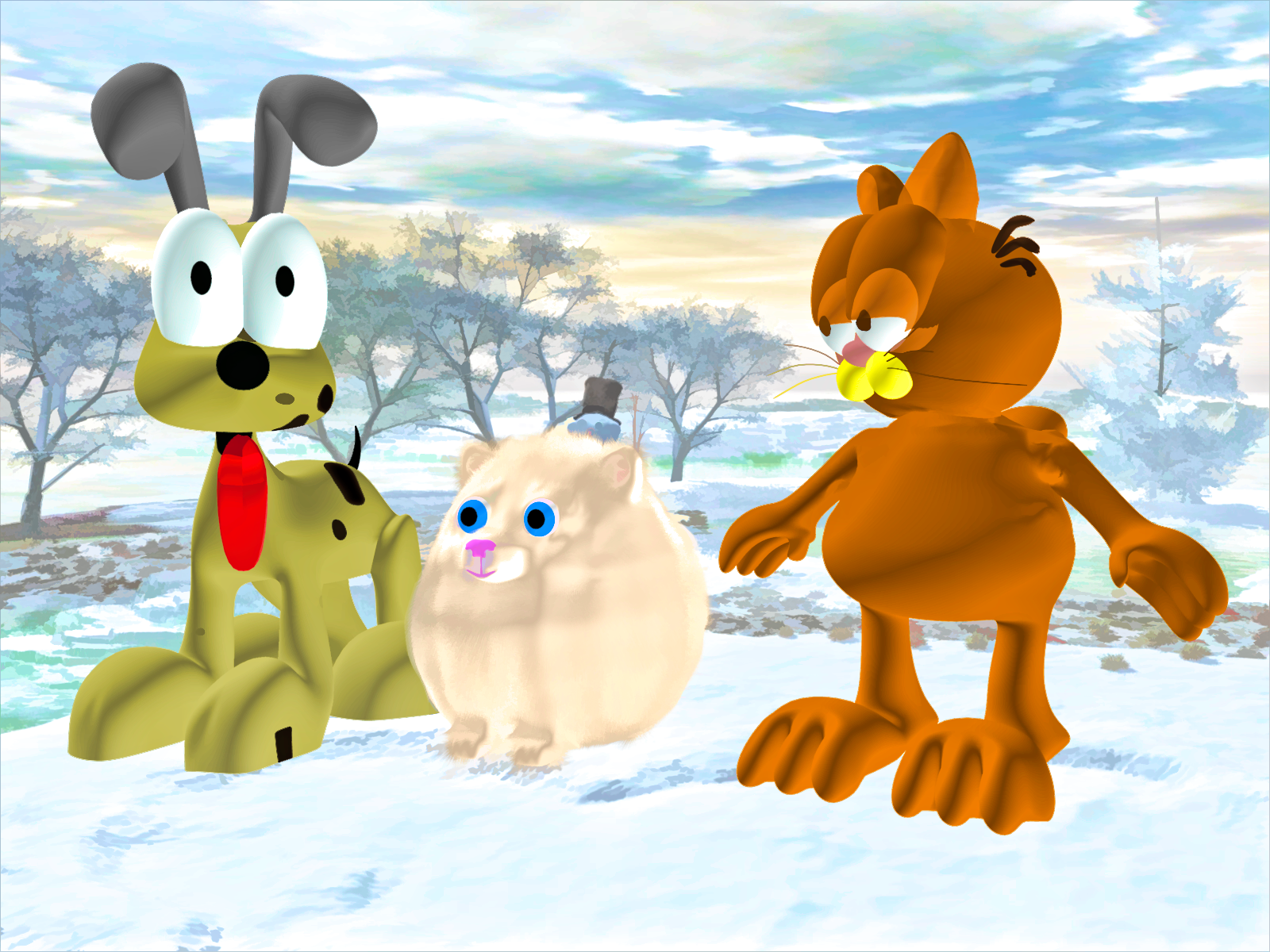 Used the 3DU toons ( version 1 ) retextured with Carrara texture room and modeled Grimmace & the speaker and notes and used the burger from Carrara objects models. The black eyed suzans are from HW3D
