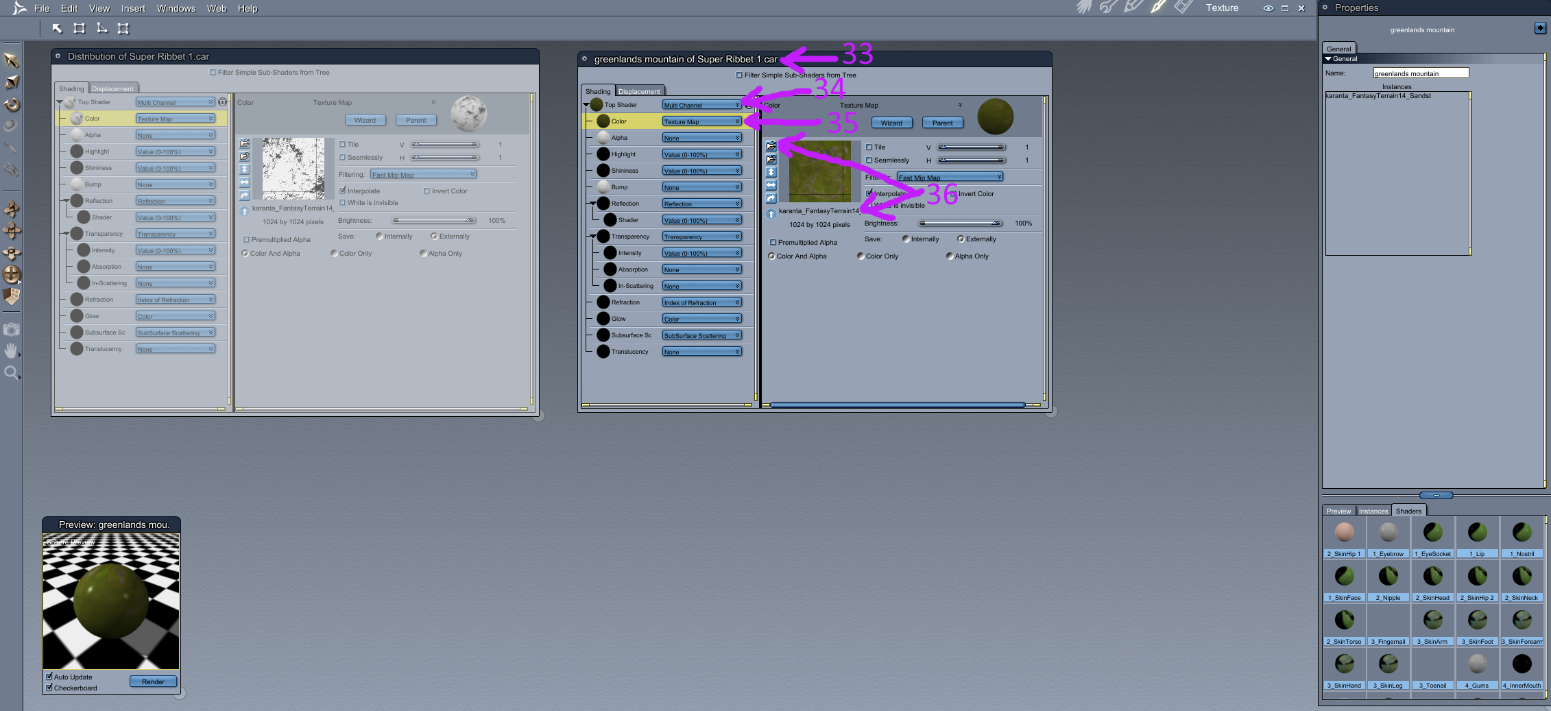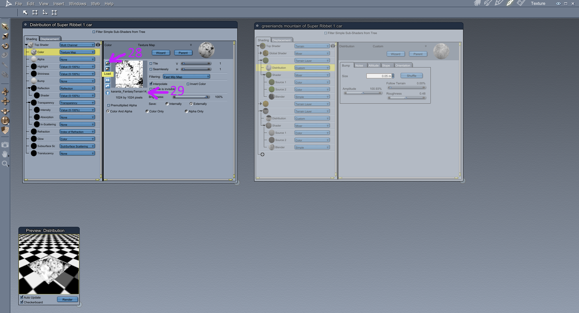 8. With the Distribution Shader open in the Texture room, set about doing a few changes