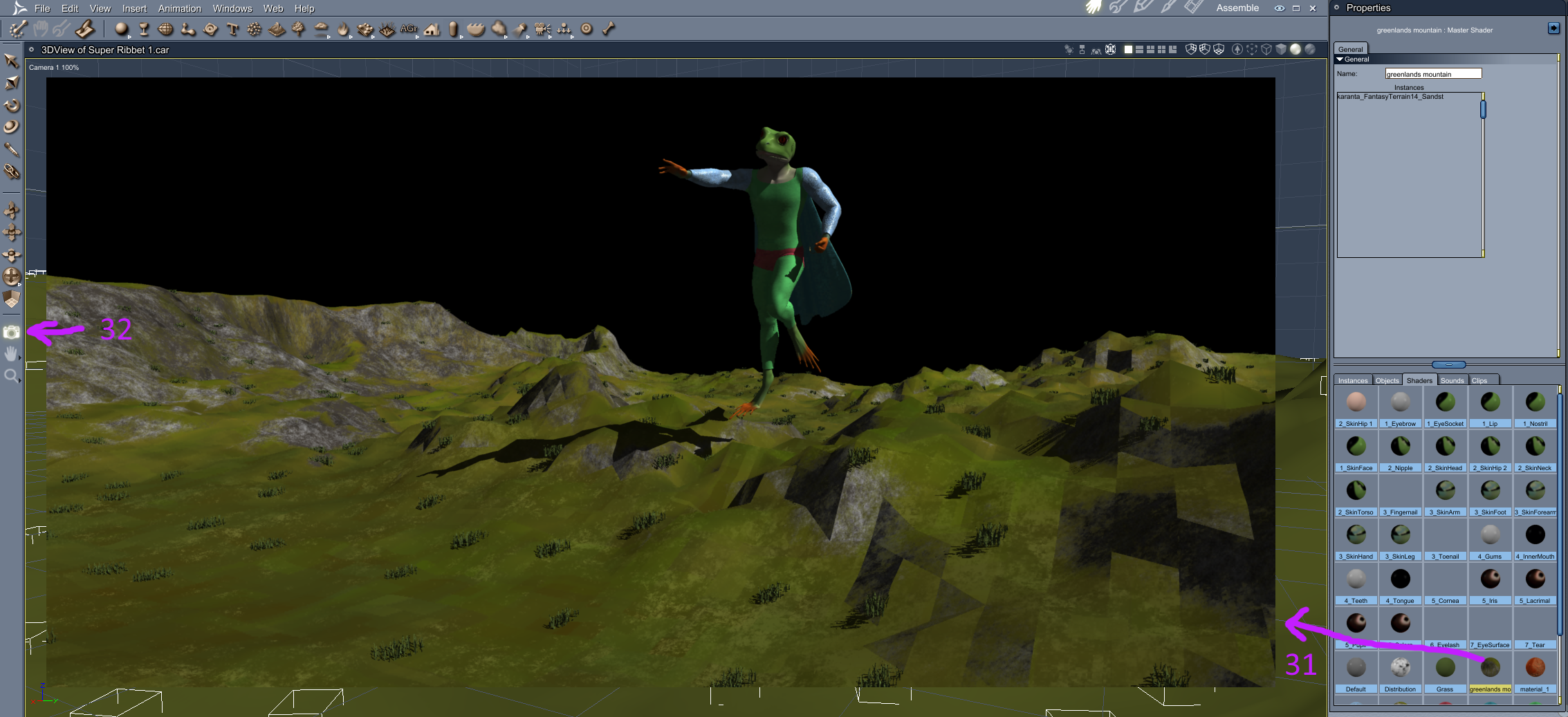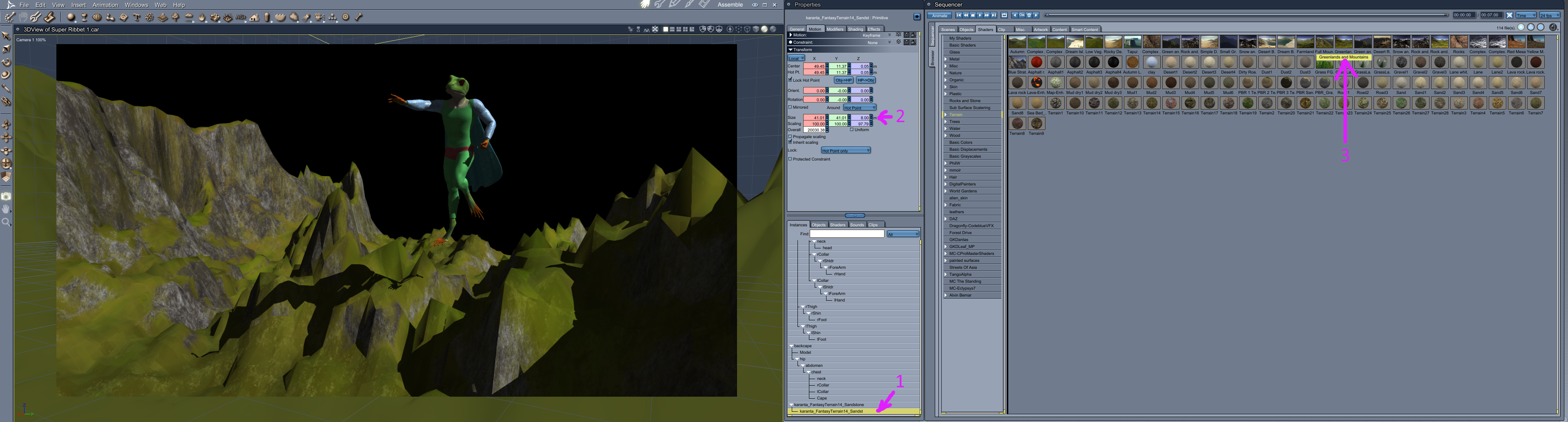 31. Apply the Carrara Terrain shader to the Terrain again.