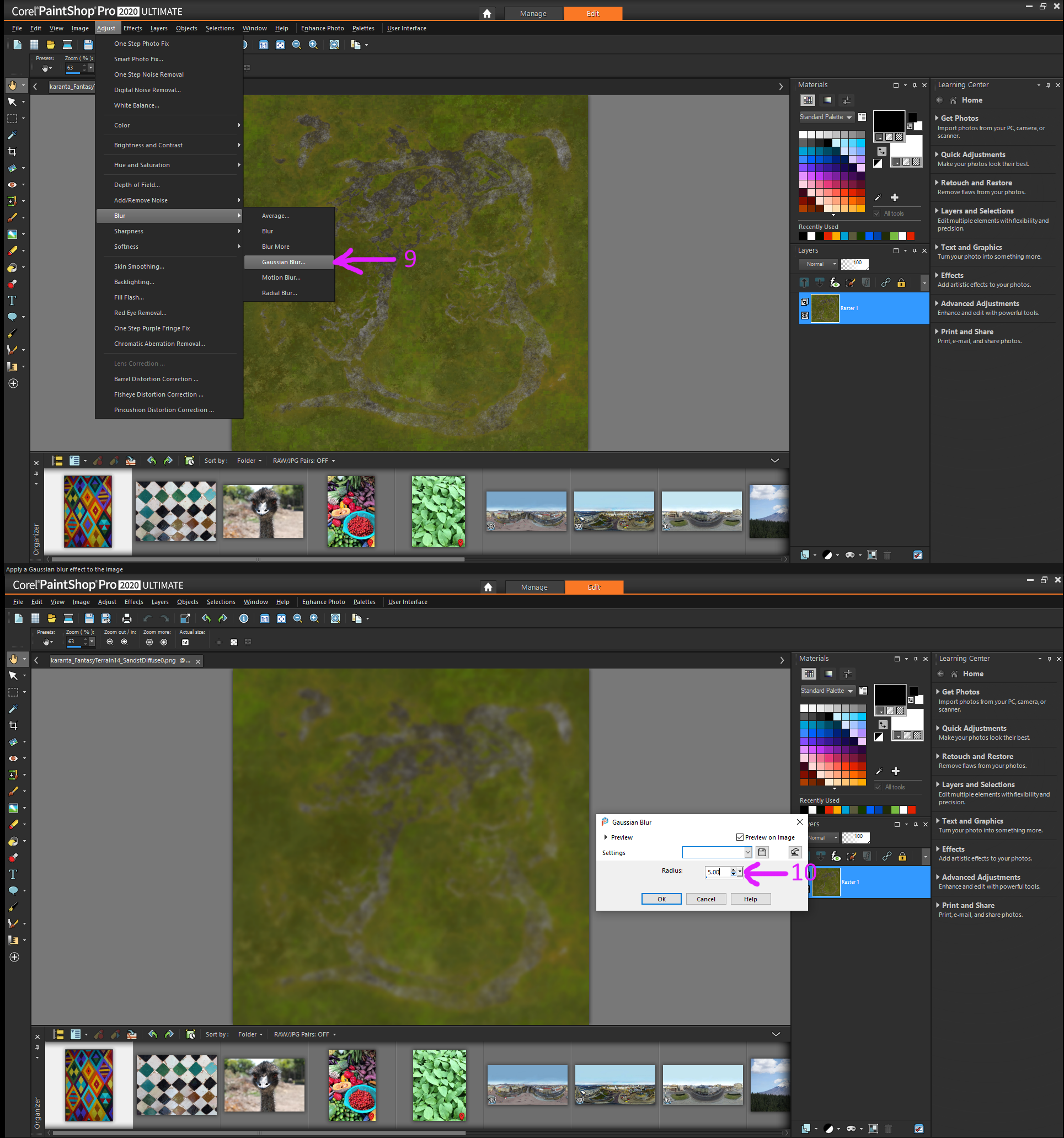 9. Opened the output file in PSP, went to Adjust, Blur, Gaussian Blur