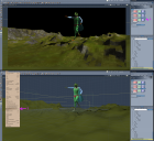 - the main body turns blue and I selected the back polygons which turned green. I tried to curl the back up.
