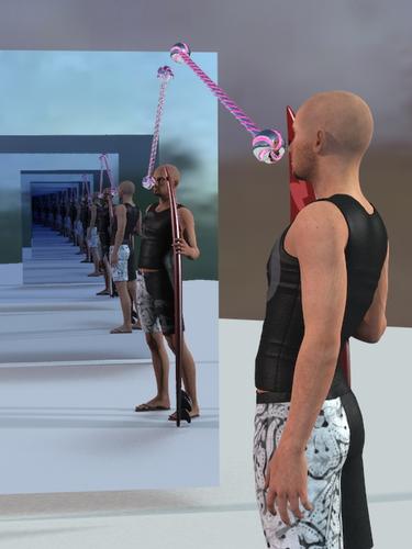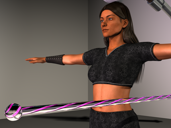 Done, The texture map was more difficult to make then the staff it's self. The 2 inch balls on the ends are the same except 1 vertical tile instead of 20. Set there parent to the staff (Cylinder) after they have been 'Transited' into position.