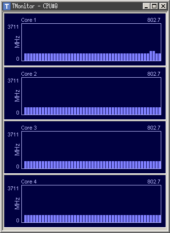 In any case Tmonitor is Not showing the CPU usage, just some clock settings somewhere. My core temps alone was telling me nothing is running at 800MHz. socket mismatch?