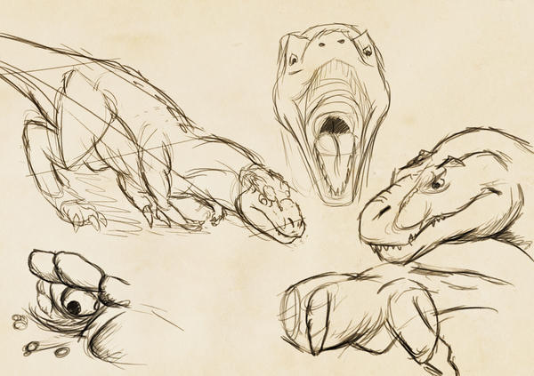 Did myself some drawing as well. Pictured below is some sketches of that Saurian dinosaur/dragon from FFXII and a terrible attempt at a front-view of it roaring. *Huffs* looks nothing like him >_>