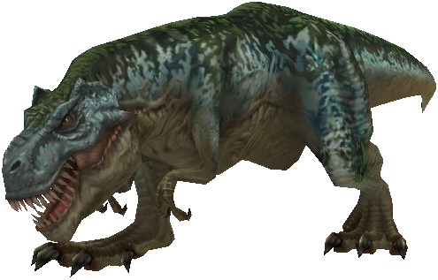 There's several dinos in this game, but none of them are named after real dinosaurs. The mottled green one is the weakest and most common, full name being 'Wild' Saurian. Past games had stuff like Tyrannosaurus and Allosaurus, but lately they've been giving generic or fantasy names to them instead.